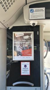 Les véhicules sont équipés d’un bouton d’appel de détresse, permettant au conducteur de prévenir le PC régulation d’un problème à bord. Couplé à la géolocalisation et à la radio, ce système permet aux équipes d’encadrement d’intervenir rapidement et d’évaluer la situation.